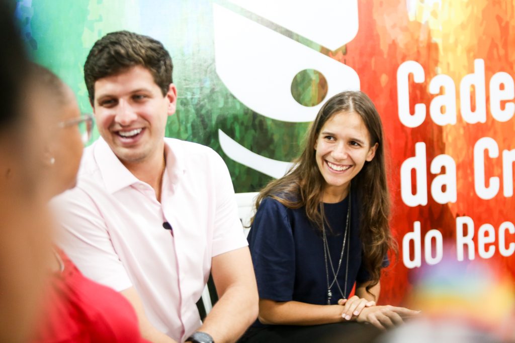 Nesta quarta-feira (16), no edifício-sede da Prefeitura do Recife, João Campos recebeu a presidente executiva do Movimento Todos Pela Educação, Priscila Cruz, e a diretora-presidente do Centro de Inovação para a Educação Brasileira (CIEB), Julia Sant’Anna, para a apresentação do aplicativo Caderneta da Criança do Recife e suas funcionalidades. A apresentação da ferramenta que disponibiliza, de forma digital e acessível, todas as informações e funcionalidades da tradicional Caderneta da Criança do Governo Federal, além de integrar as bases de dados e informações das secretarias municipais, contemplou também uma visita à Creche Municipal 14 Bis, em Boa Viagem, para uma roda de conversa sobre o aplicativo com pais e responsáveis.