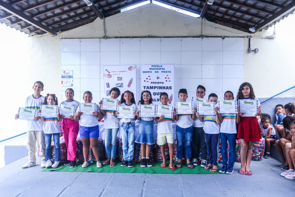 A Escola Municipal Serra da Prata, localizada no Ibura, realizou nesta sexta-feira (3) a culminância do projeto “Tampinhas que Salvam Vidas”, iniciativa pedagógica desenvolvida desde abril com base no tema do ano letivo da Rede Municipal de Ensino do Recife, “Educação, Meio Ambiente e Sustentabilidade: tecendo práticas para a construção de uma sociedade consciente”. O evento foi marcado por um gesto solidário, a doação de aproximadamente 100 mil tampinhas plásticas ao Grupo de Ajuda à Criança Carente com Câncer (GAC).