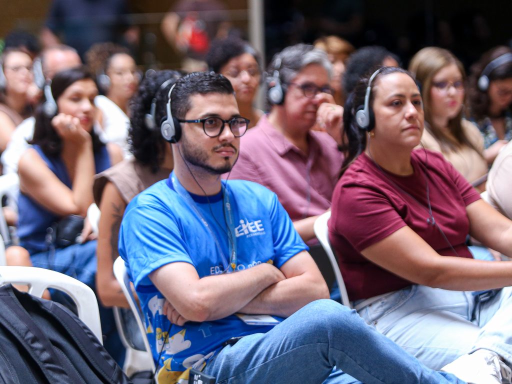 À tarde, o foco se voltou para temas que unem cultura e cidadania. A mesa-redonda “Antirracismo na Primeira Infância: Cultivar o Futuro com Raízes na Ancestralidade” promoveu uma conversa potente entre educadoras, gestoras e representantes do Ministério da Saúde, reforçando a importância de discutir identidade e equidade desde os primeiros anos de vida. O encontro trouxe reflexões sobre como o brincar, a arte e o currículo podem fortalecer o pertencimento e o respeito às diferenças.