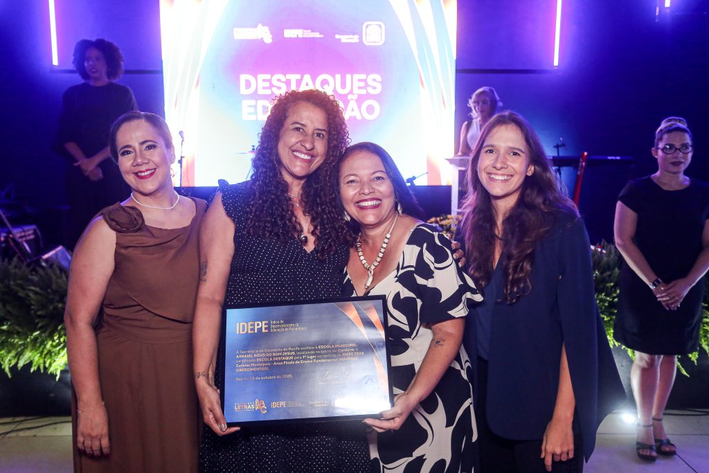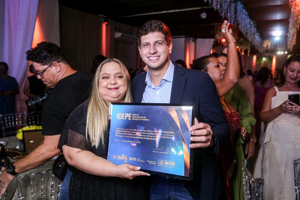 O destaque inicial foi o Programa Primeiras Letras, que visa garantir a alfabetização de todas as crianças até os sete anos. Vinte escolas foram reconhecidas pelo desempenho excepcional, com ênfase nas que demonstraram maior evolução. Na categoria de Maiores Crescimentos, a Escola Municipal Campina do Barreto liderou registrando um crescimento de 21,77%, seguida pela Escola Municipal Severina Bernadete Teixeira (16,76%) e pela Escola Municipal Isaac Pereira da Silva (15,61%). Na categoria Melhores Resultados, a Escola Municipal João Pessoa Guerra conquistou o primeiro lugar com 629,92 pontos, seguida pelas Escolas Municipais do Jordão (618,57) e Casa Amarela (614,54).