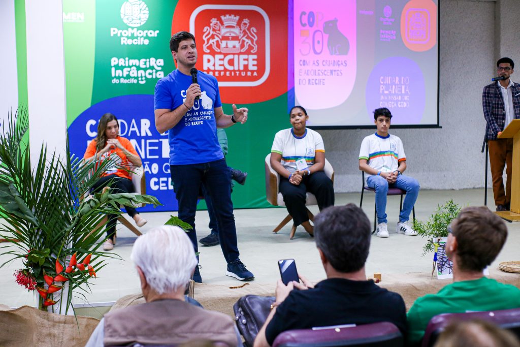 “A COP30 é o maior encontro global sobre o clima, reunindo líderes e representantes do mundo todo para discutir ações de preservação do meio ambiente. O Recife vai participar desse importante evento em Belém, levando o compromisso da cidade com um futuro sustentável. Antes disso, estamos fazendo nossa tarefa de casa, com obras, projetos e ações que fortalecem nossa cidade. E nada mais justo que ouvir quem representa o futuro, nossas crianças e jovens, que hoje iniciam esse grande encontro. O que estamos fazendo aqui é preparar essa geração para ser protagonista das transformações que o mundo precisa”, destacou o prefeito do Recife, João Campos.