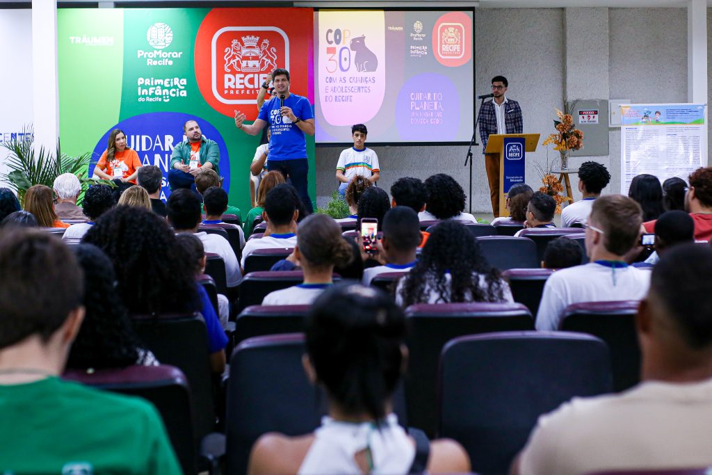 Recife realizou a COP 30 com crianças e adolescentes neste sábado (1), no Centro de Formação de Professores Paulo Freire, reunindo mais de 150 estudantes. A Iniciativa reforça o protagonismo da capital pernambucana na agenda ambiental e no incentivo à educação climática.