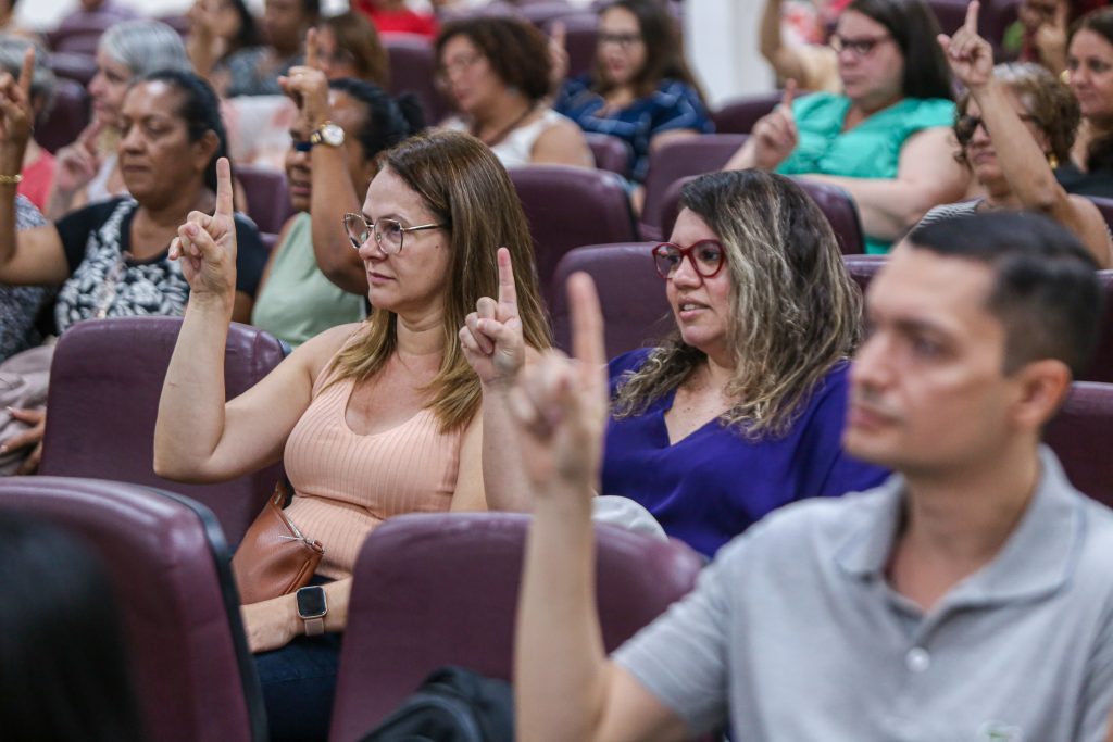 Programa de Correção e Fluxo Escolar e Seminário de Socialização de Experiências Exitosas dos 3º e 4º anos ocorreram simultaneamente, reunindo professores, gestores e equipes técnicas em uma jornada de troca e fortalecimento pedagógico. Foto: Kleyvson Santos/PCR