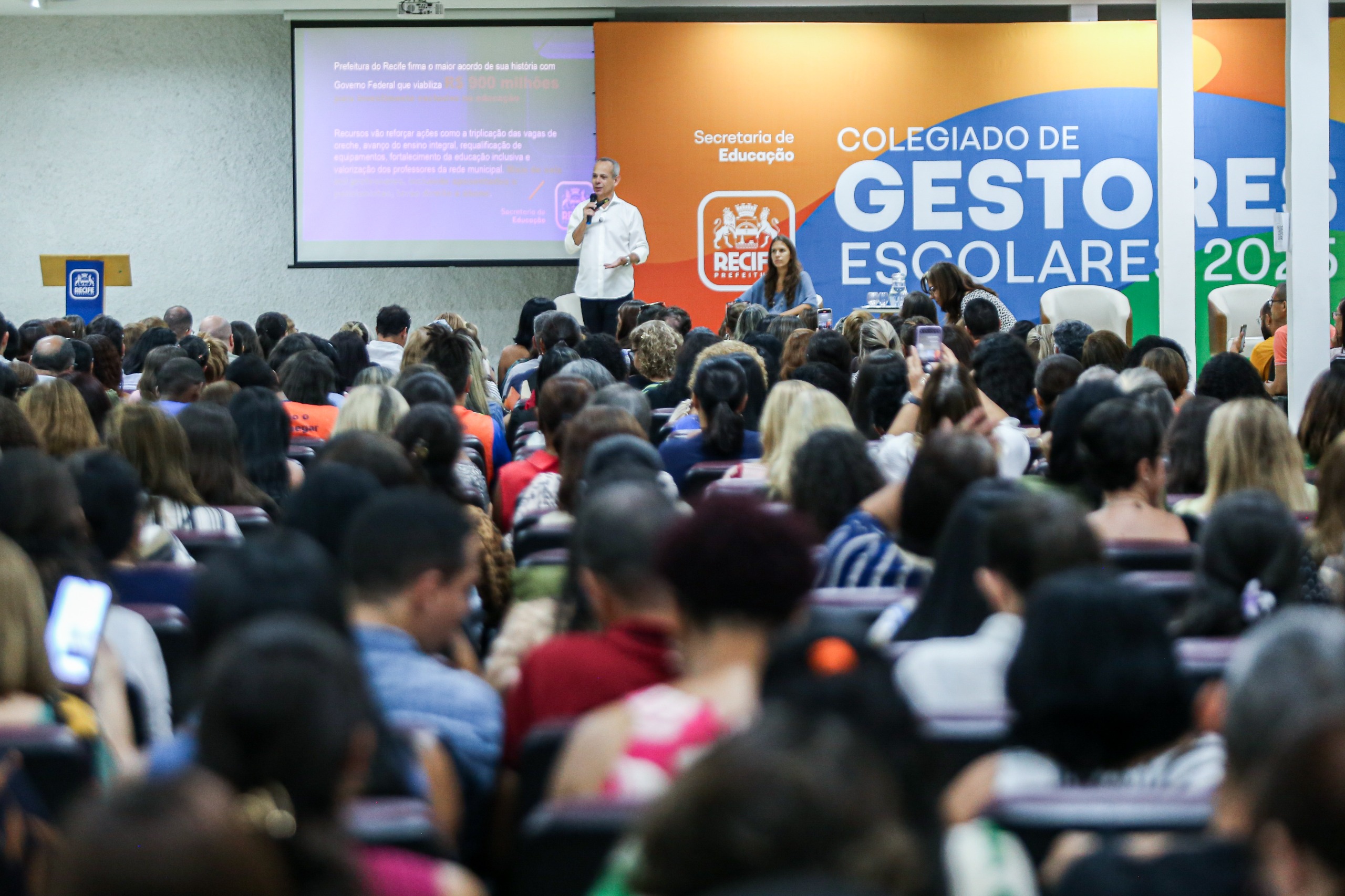 21/03/2025 Colegiado de Gestores Escolares celebra maior repasse federal da história para a Educação do Recife Nesta sexta-feira (21), a Escola de Formação de Educadores do Recife Professor Paulo Freire (Efer) foi palco do Colegiado de Gestores Escolares 2025, reunindo diretores das unidades educacionais das quatro gerências regionais da cidade. O encontro teve como propósito fortalecer a comunidade escolar por meio da colaboração entre os gestores, reforçando o compromisso de aprimorar continuamente a educação no Recife.